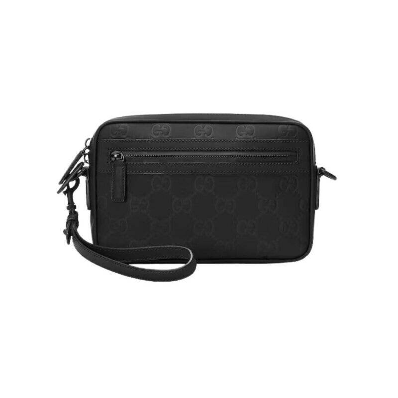 GUCCI GG RUBBER EFFECT CROSSBODY BAG IN BLACK
