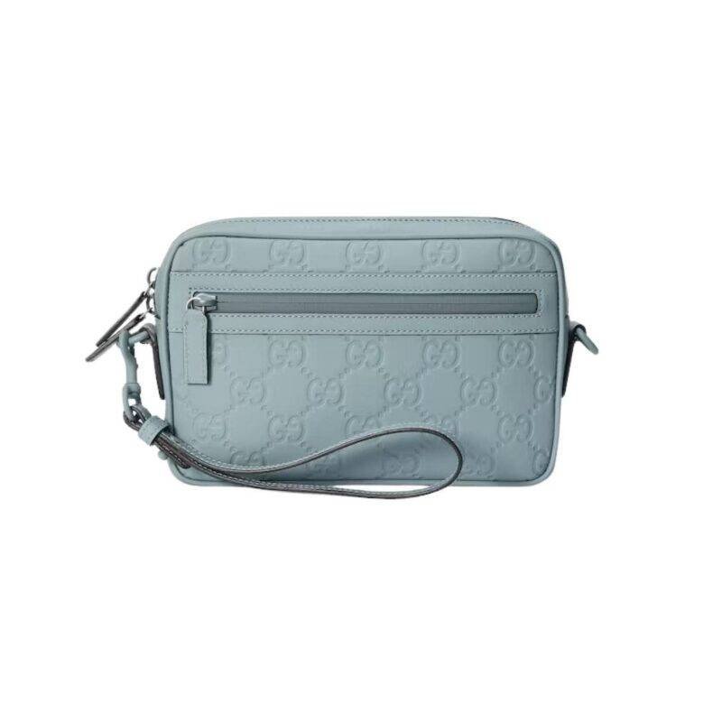 GUCCI GG RUBBER EFFECT CROSSBODY BAG IN LIGHT BLUE