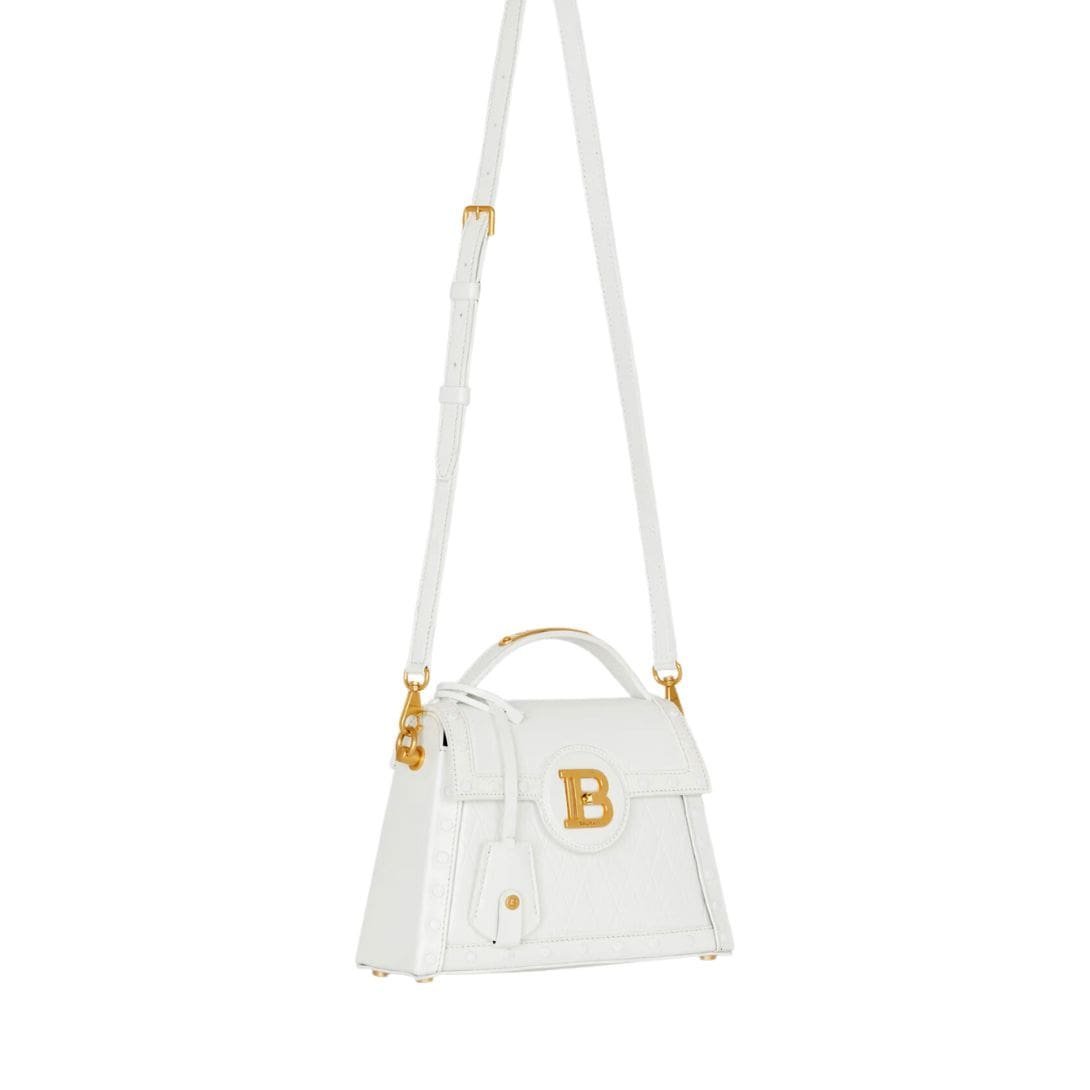 BALMAIN B-BUZZ DYNASTY BAG IN GRID-EMBOSSED CALFSKIN