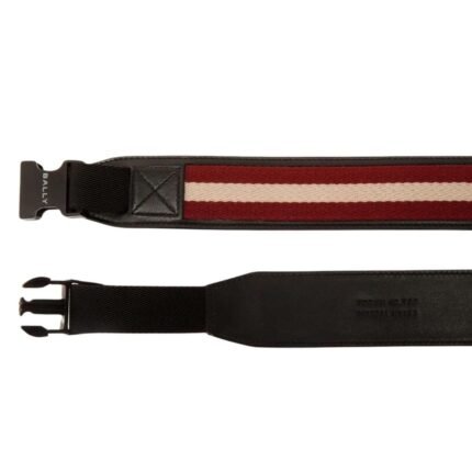 BALLY TOBYN 40MM BELT IN RED,WHITE AND BLACK FABRIC AND LEATHER