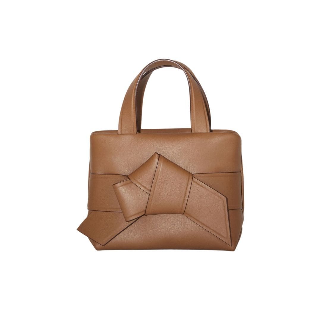 The tote’s standout feature is the knotted detailing on the sides, reminiscent of the intricate knots used in Japanese obi belts. These elegant knots add a unique and artistic touch, elevating the bag’s overall design. The minimalistic Acne Studios logo subtly embossed on the front adds to its understated elegance.