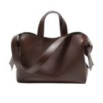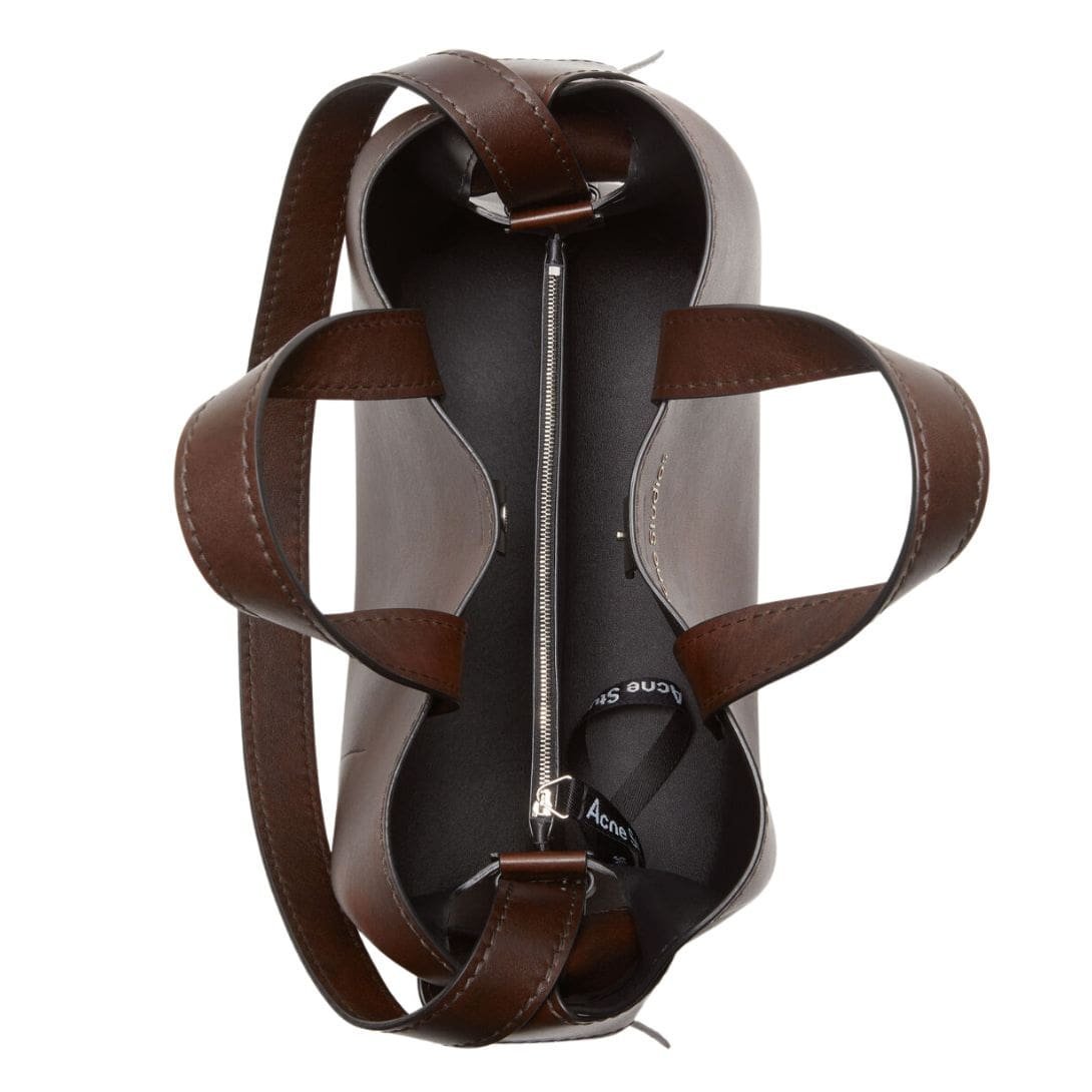 The tote is designed with versatility in mind, featuring both top handles and a detachable shoulder strap, allowing it to be carried by hand or worn over the shoulder. This adaptability makes it suitable for various occasions, from business meetings to casual outings. The bag’s minimalist exterior is adorned with subtle Acne Studios branding, maintaining the brand’s commitment to understated luxury.