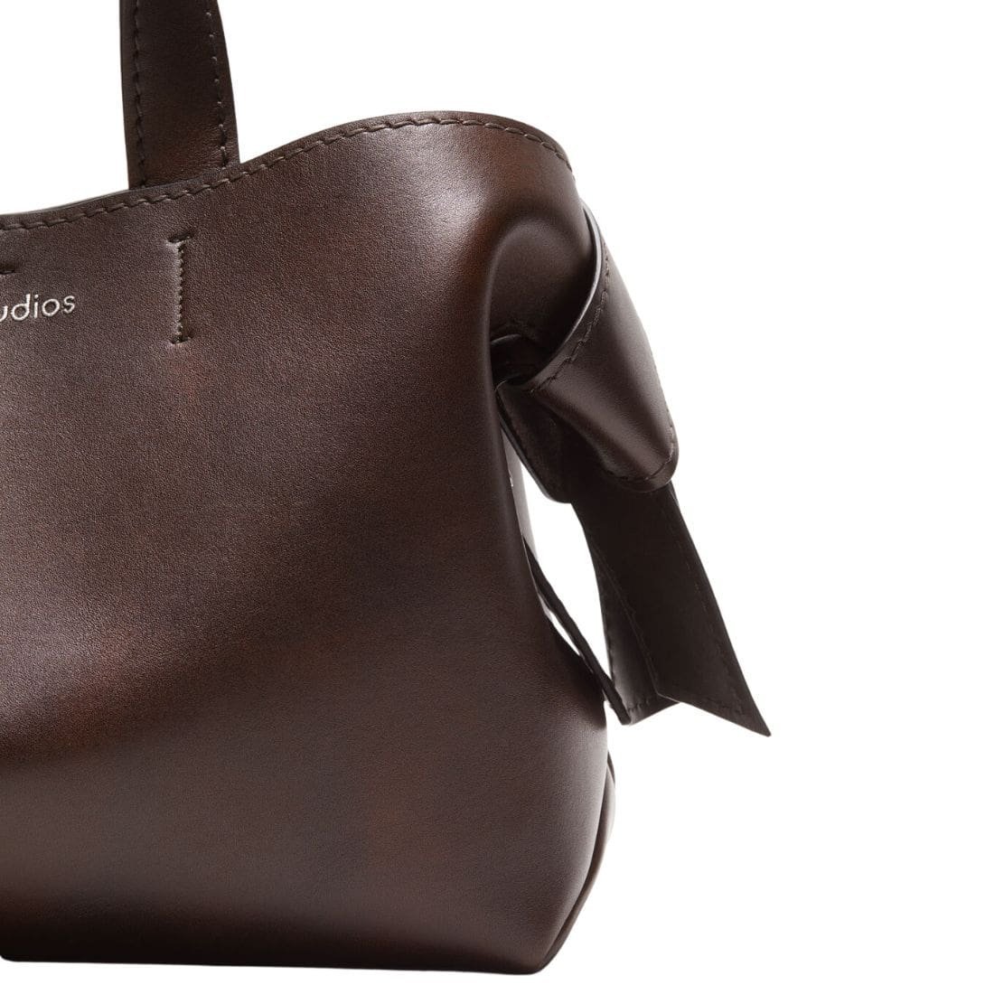 The Acne Studios Musubi Midi Tote is a sophisticated and stylish accessory that embodies the minimalist and contemporary aesthetic characteristic of the Swedish fashion house. Crafted from high-quality leather, the Musubi Midi Tote features a sleek, structured silhouette that combines functionality with a modern design. Its standout feature is the distinctive twisted knot detail on the sides, inspired by the traditional Japanese obi sash, which adds an artistic and elegant touch to the bag. ACNE STUDIOS MUSUBI MIDI TOTE