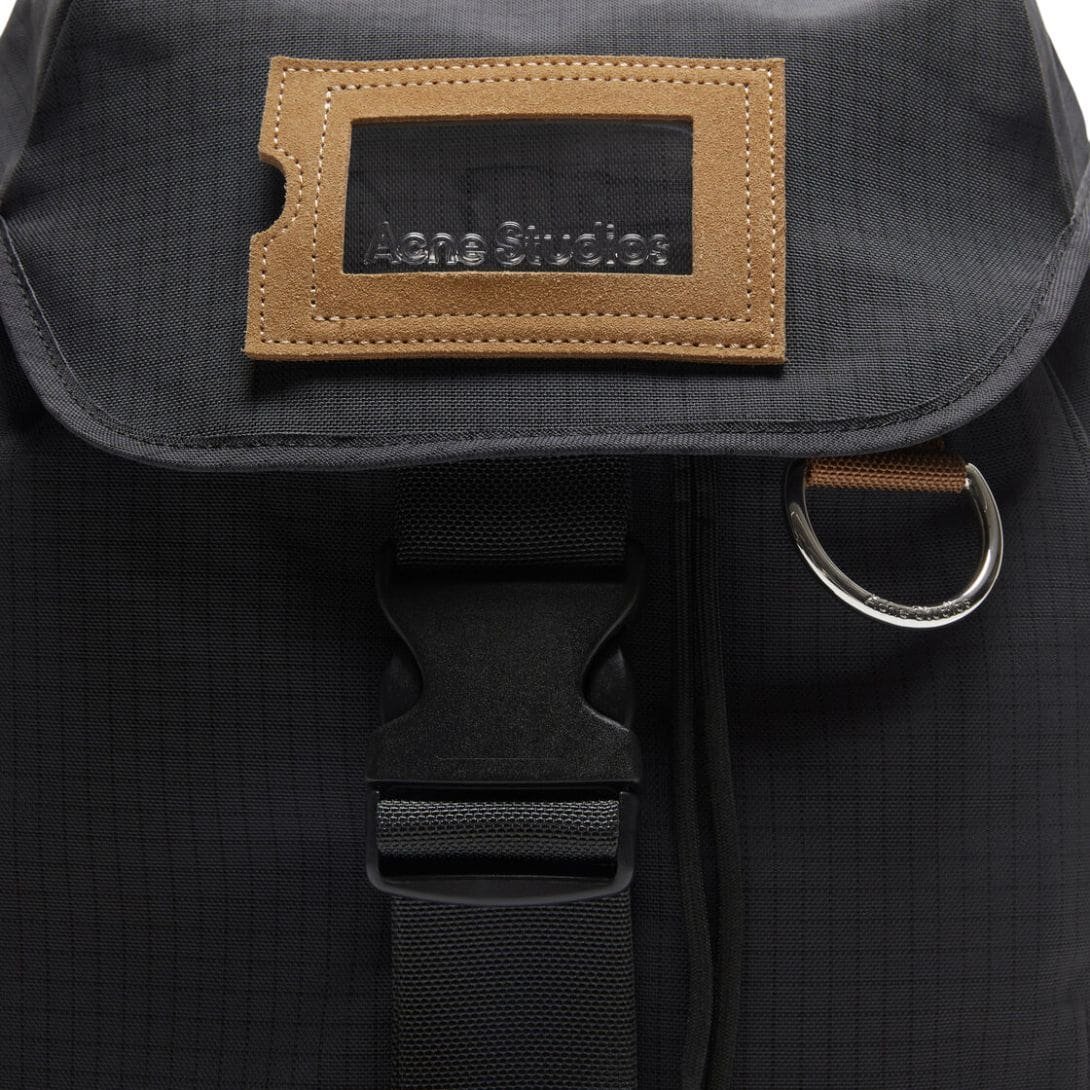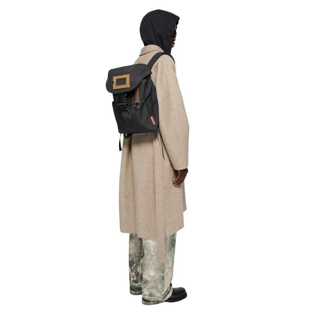 Subtle branding details, such as the discreet Acne Studios logo patch on the front, add a touch of sophistication without overwhelming the minimalist design. This understated branding approach allows the backpack’s timeless appeal to speak for itself, appealing to those who appreciate refined aesthetics and attention to detail.