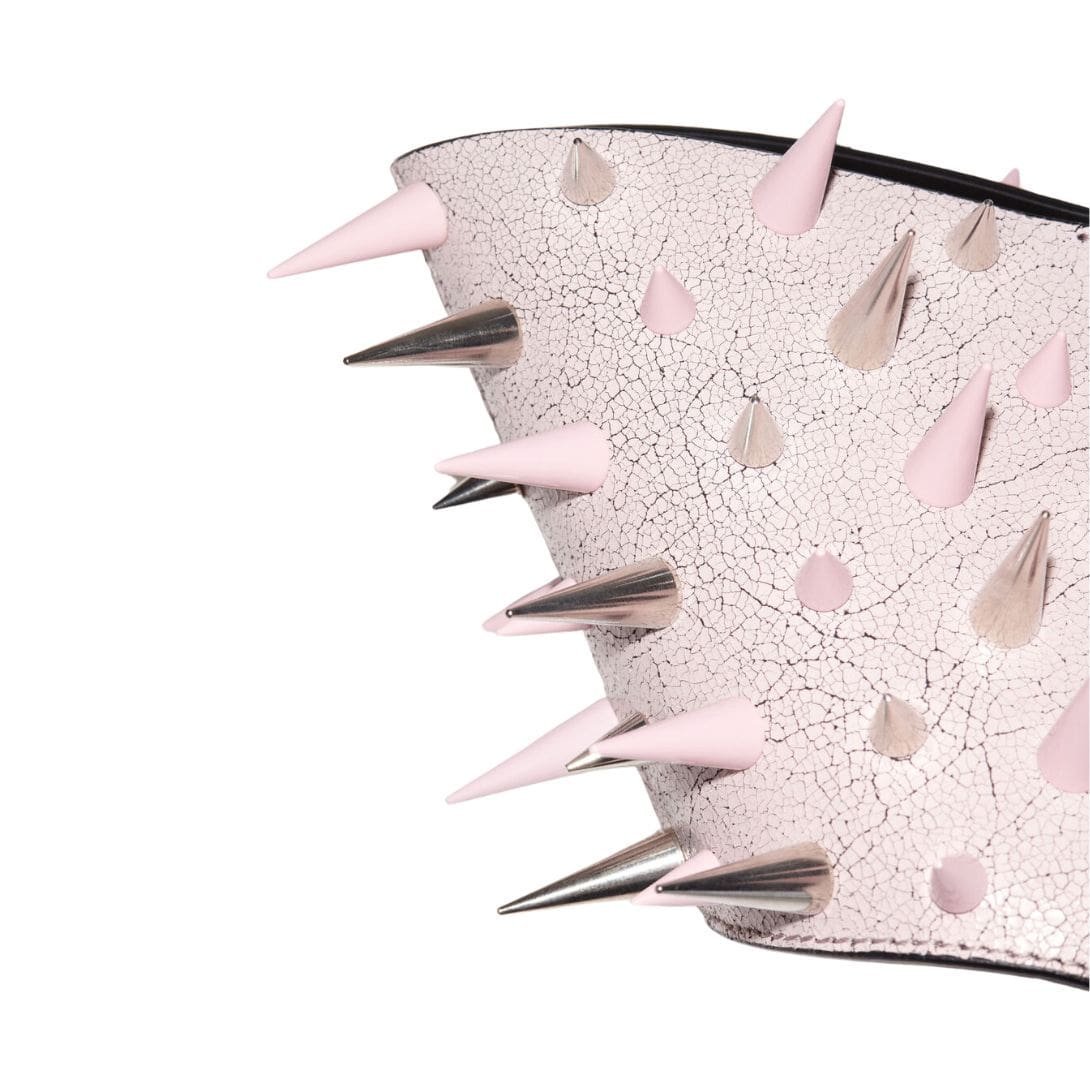 The standout feature of this accessory is its distinctive spiked embellishments adorning the exterior. Strategically placed to create visual interest and edgy allure, these studs add a rebellious flair to the bag’s refined aesthetic. Contrasting with the smooth leather surface, the spikes create a captivating juxtaposition, effortlessly blending sophistication with a hint of rebellion.