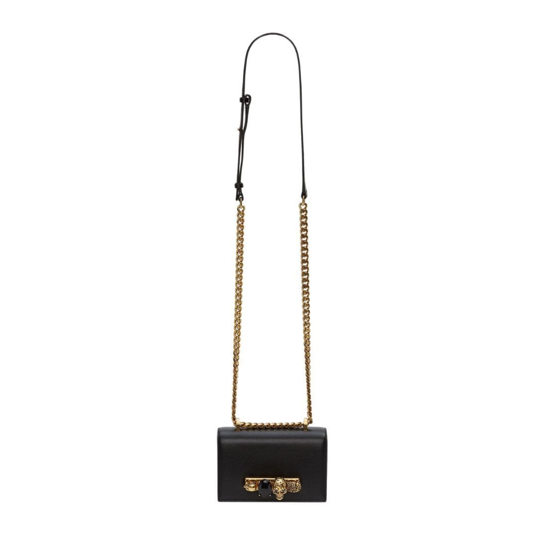 Be the first to review “ALEXANDER MCQUEEN WOMANS MINI JEWELLED SATCHEL IN BLACKGOLD” Cancel reply