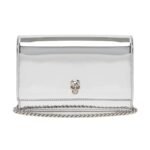 This Alexander Mcqueen Womans Small Skull In Silver features a convenient magnetic fastening for easy access. Inside, it boasts one central compartment and a card slot, perfect for organizing your essentials. The interior is lined with luxurious leather, enhancing its premium feel.
