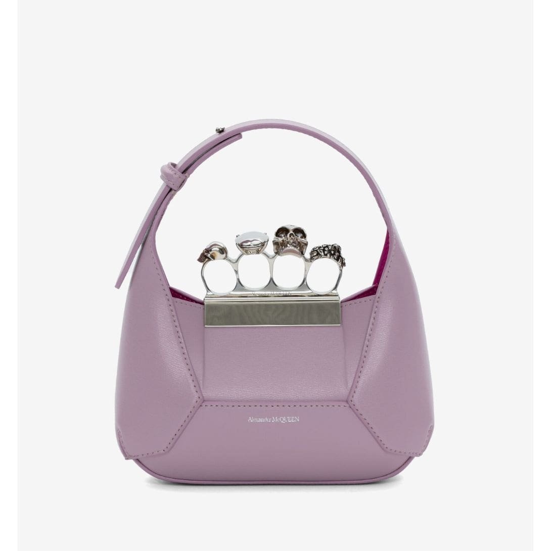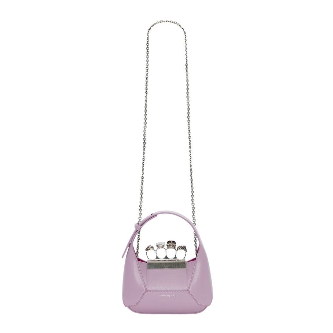 Introducing the Alexander McQueen Womens The Jewelled Hobo Bag In Antique Pink, crafted from Camel smooth calfskin leather with an antique silver-finished handle adorned with crystal-encrusted rings. Inspired by the faceted stone on the Knuckle, its unique silhouette features leather panels that are intricately cut and re-assembled.