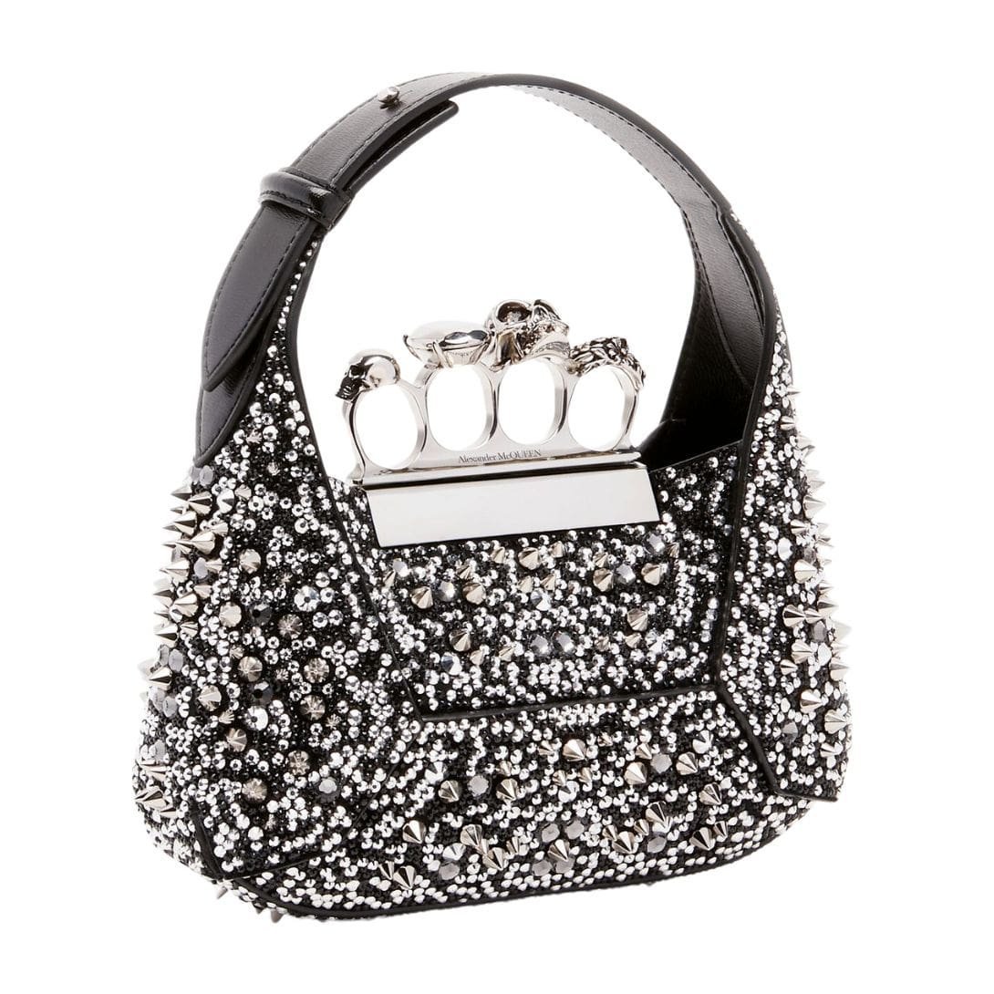 ALEXANDER MCQUEEN WOMEN’S THE JEWELLED HOBO MINI BAG IN SILVER
