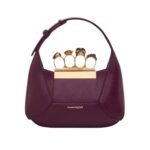 Introducing the Alexander McQueen Womens the jewelled Hobo mini bag in burgundy, crafted from smooth welsh red calfskin leather with an antique silver-finished handle adorned with crystal-encrusted rings. Inspired by the faceted stone on the Knuckle, its unique silhouette features leather panels that are intricately cut and re-assembled.