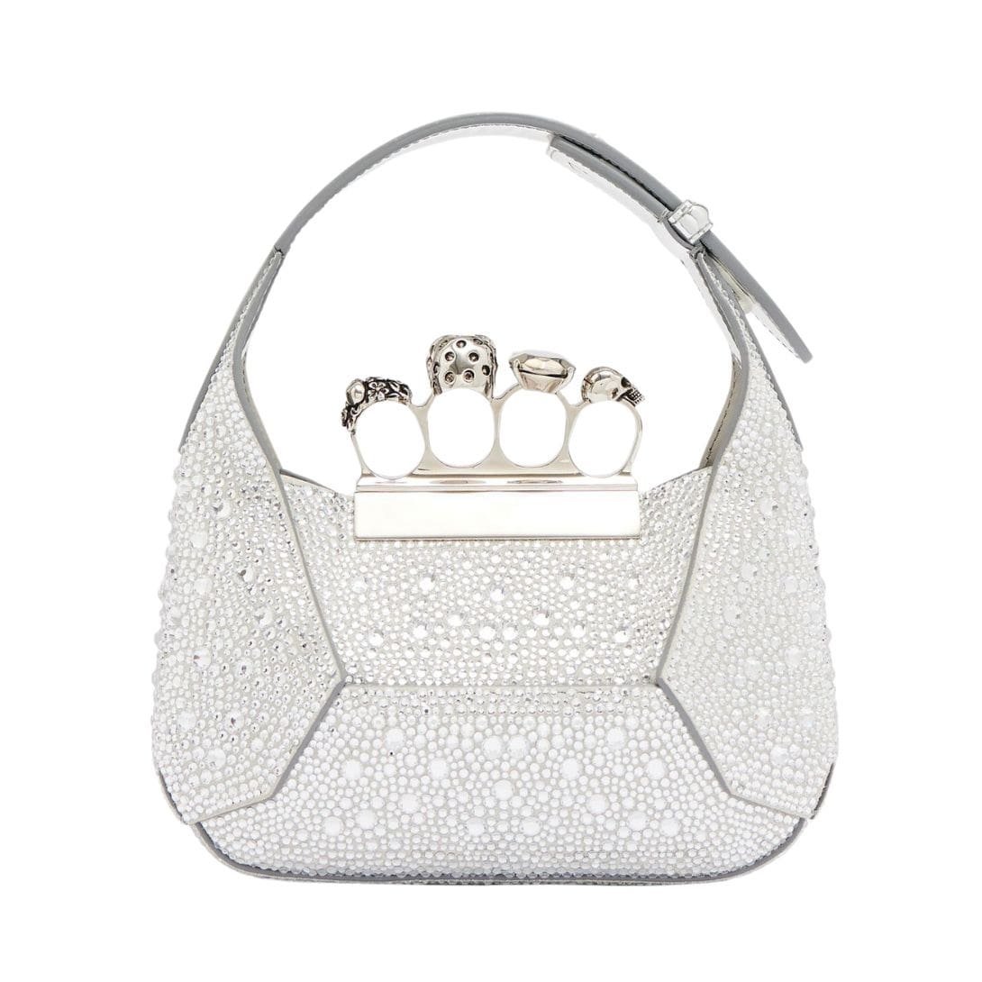 ALEXANDER MCQUEEN WOMENS THE JEWELLED HOBO MINI BAG IN SILVER