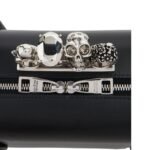 Alexander McQueen Womens The Reverse Clutch in Black is a sophisticated and elegant accessory. The clutch measures 21 cm in height, 30 cm in length, and 10 cm in depth (7 x 8.2 x 3.9 inches) with a handle drop of 16 cm (6.2 inches). It features a double metal zip fastening for secure closure and four metal feet that provide stability and protection.