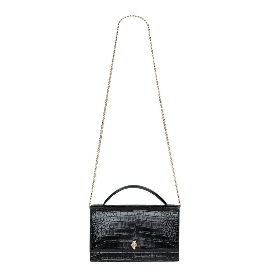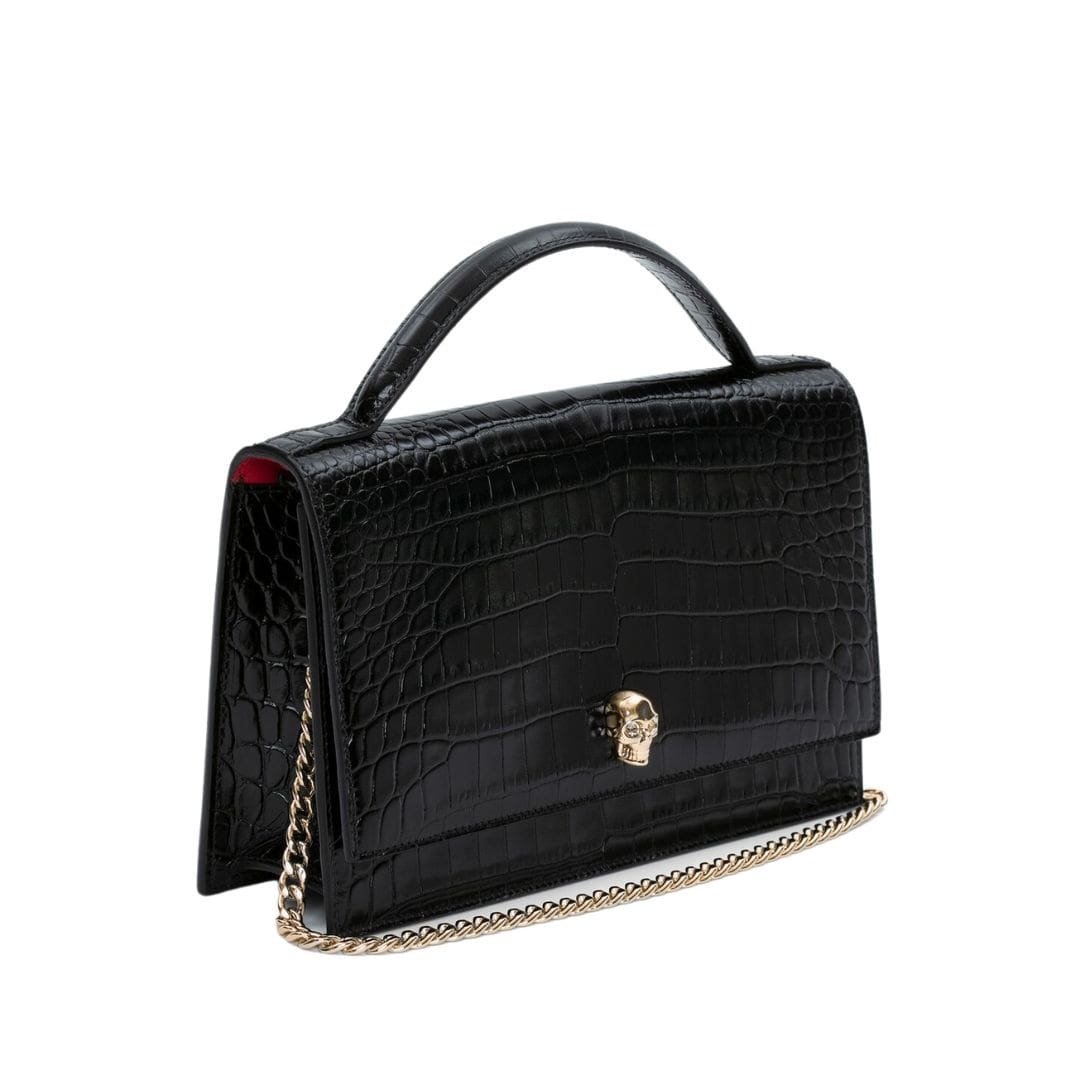 ALEXANDER MCQUEEN WOMENS TOP HANDLE SKULL BAG IN BLACK