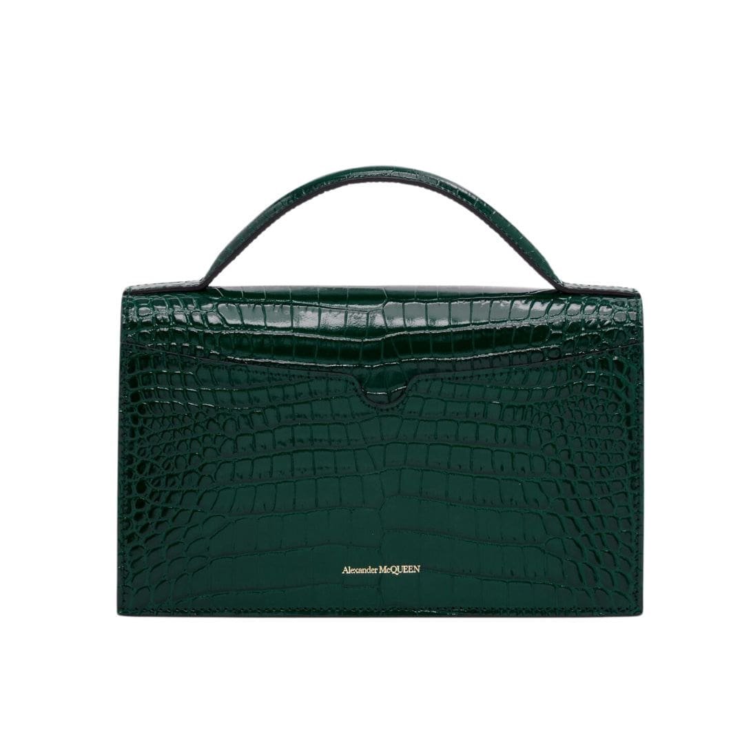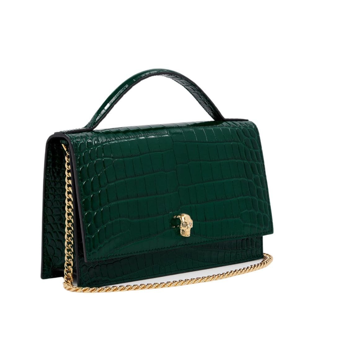 ALEXANDER MCQUEEN WOMENS TOP HANDLE SKULL BAG IN EMERALD