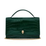 Alexander McQueen Womens Top Handle Skull Bag in Emerald offers both style and functionality in its compact dimensions of 24 x 14 x 6.5 cm (9.4 x 5.5 x 2.5 inches), making it an ideal accessory for modern women on the go. The strap drop of 55 cm (21.6 inches) ensures versatile carrying options, allowing for effortless transitions between different looks.