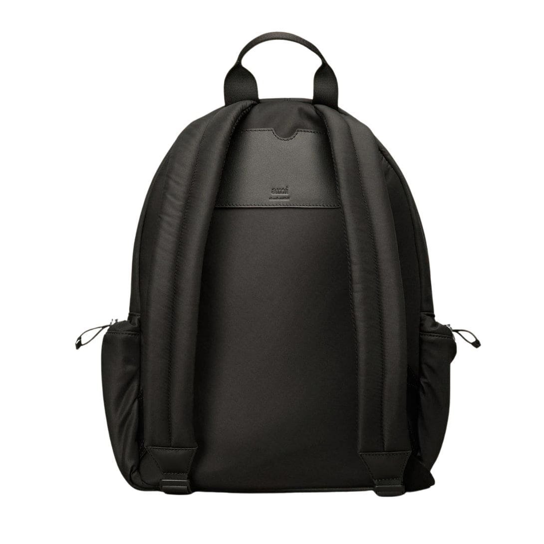 The minimalist design of the backpack is elevated by the iconic AMI de Coeur emblem embossed discreetly on the front pocket, a symbol of the brand’s heritage and refined aesthetic. This subtle detail adds a hint of character to the sleek silhouette, making it instantly recognizable to those in the know.