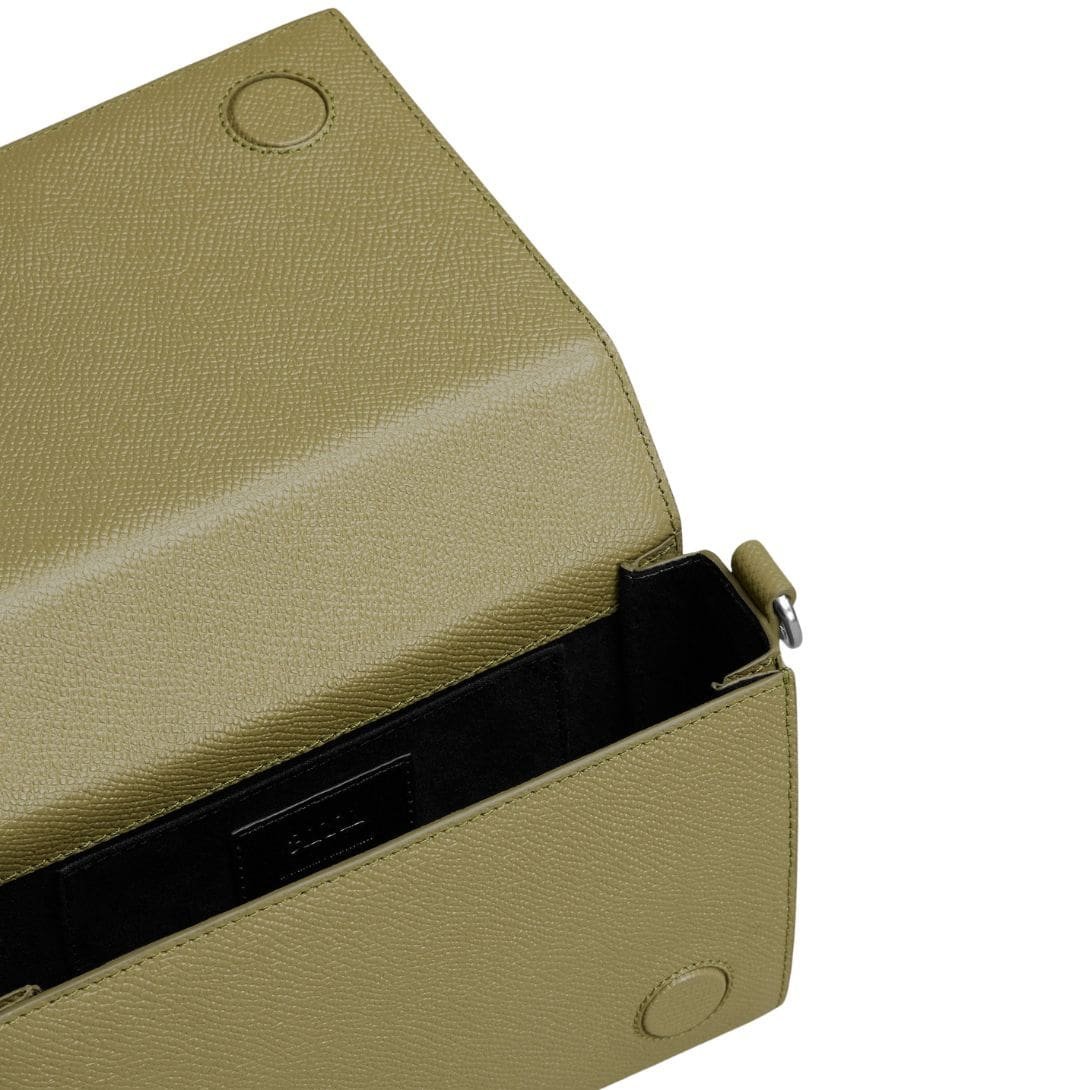 The rich olive hue of the bag exudes a sense of refinement, effortlessly complementing any ensemble. Its sleek silhouette is accentuated by smooth lines and minimalistic detailing, showcasing a timeless aesthetic that transcends fleeting trends. Whether you’re heading to the office or meeting friends for lunch, this bag seamlessly transitions from day to night, elevating your style with its understated allure.