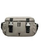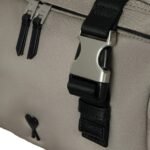 At first glance, the rich tapue hue of the bag catches the eye, exuding sophistication and versatility. The color palette evokes a sense of timeless charm, effortlessly complementing any ensemble, whether it be a casual daytime look or a more formal evening attire. The smooth, supple texture of the leather adds a luxurious touch, inviting the hand to run along its surface, while subtle embossed branding discreetly adorns the exterior, a hallmark of AMI’s understated refinement.