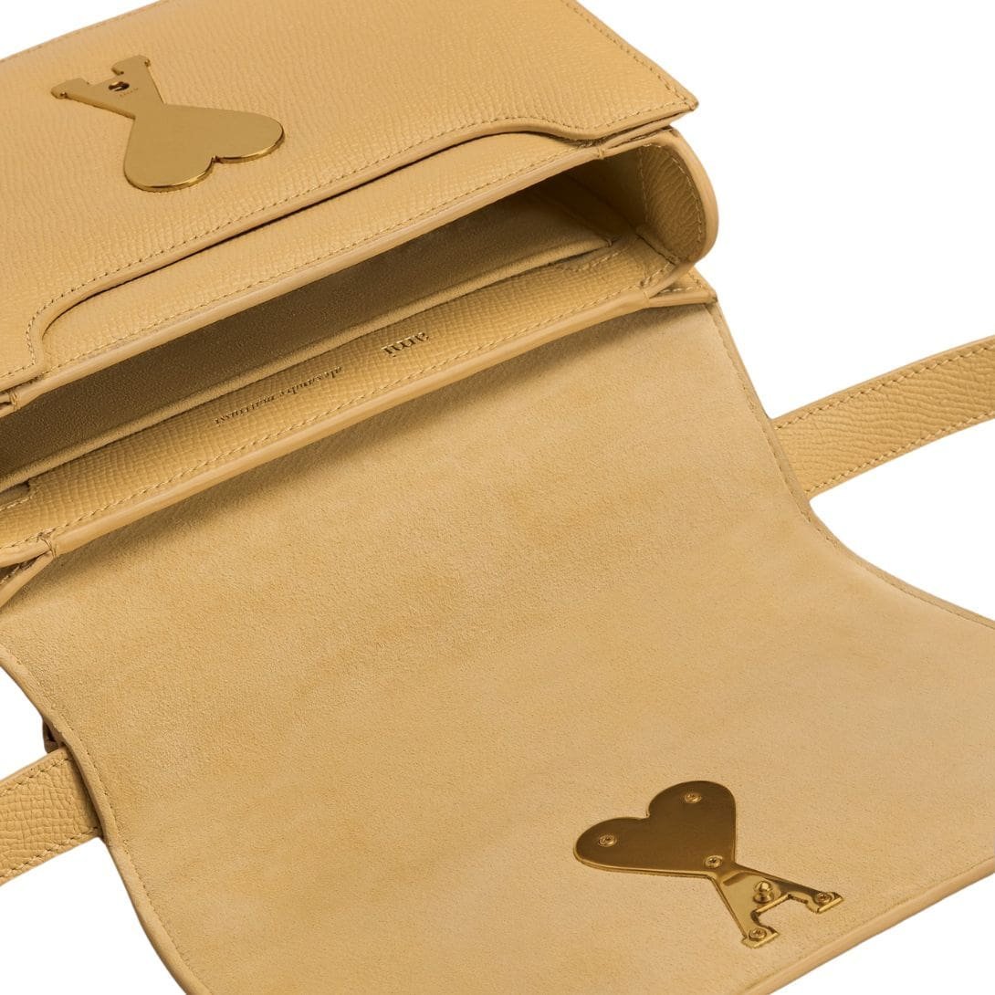 The craftsmanship of the bag is impeccable, reflecting the brand’s dedication to quality and refinement. Luxurious materials such as supple leather or rich suede are carefully selected to ensure durability and a sumptuous tactile experience. Delicate stitching and subtle embossed branding discreetly adorn the exterior, while the iconic AMI logo subtly accents the clasp, serving as a testament to the bag’s pedigree.