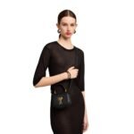 Constructed from high-quality black leather, the exterior of the bag boasts a luxurious texture that is both soft to the touch and durable, ensuring longevity and resilience against daily wear and tear. The minimalist design is adorned with subtle yet striking silver-tone hardware, adding a touch of modernity and refinement to its overall aesthetic.