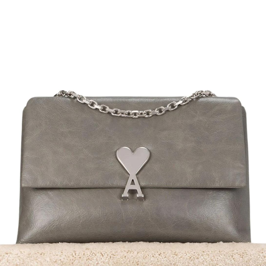 The bag’s exterior is adorned with subtle, tasteful embellishments, such as the discreet yet unmistakable AMI logo embossed or engraved on the clasp or hardware. These understated touches serve as a testament to the brand’s commitment to quality craftsmanship and attention to detail.