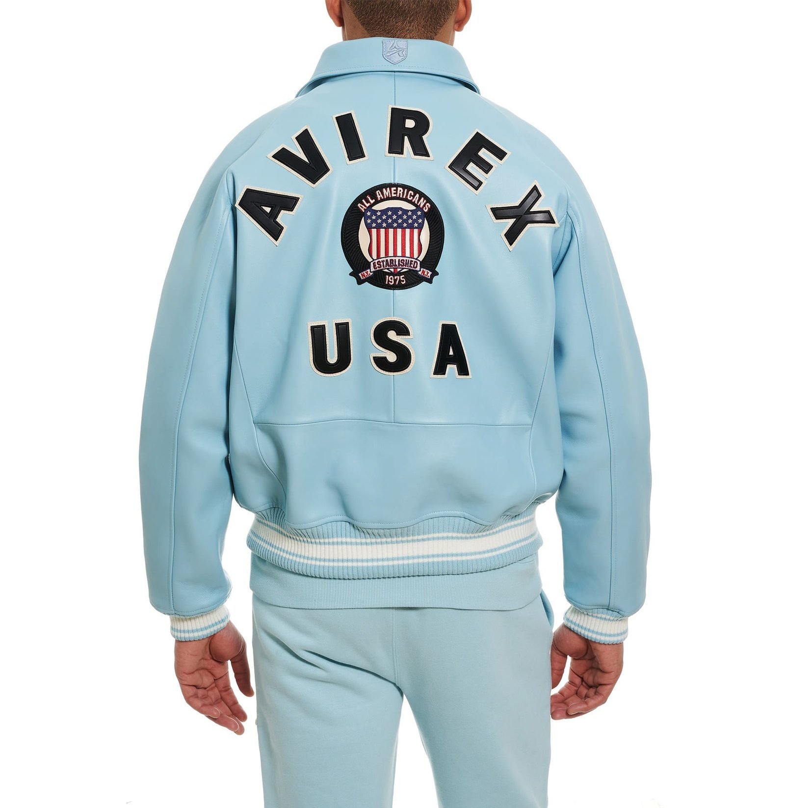 AVIREX DETROIT USA LEATHER JACKET BLUE