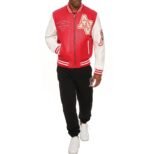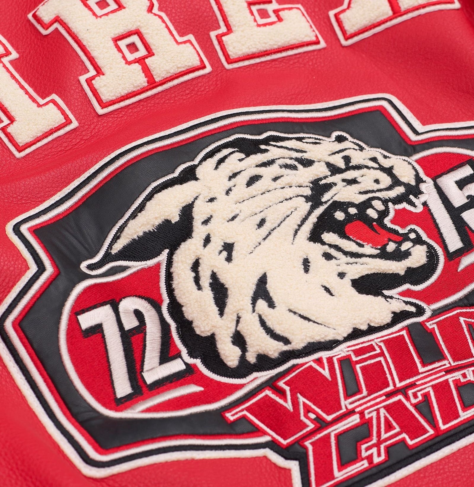 Classic Avirex Wild Cat Varsity Leather Jacket in 100% pebble cowhide with Wildcats applique and chenille embroidery patch set art.