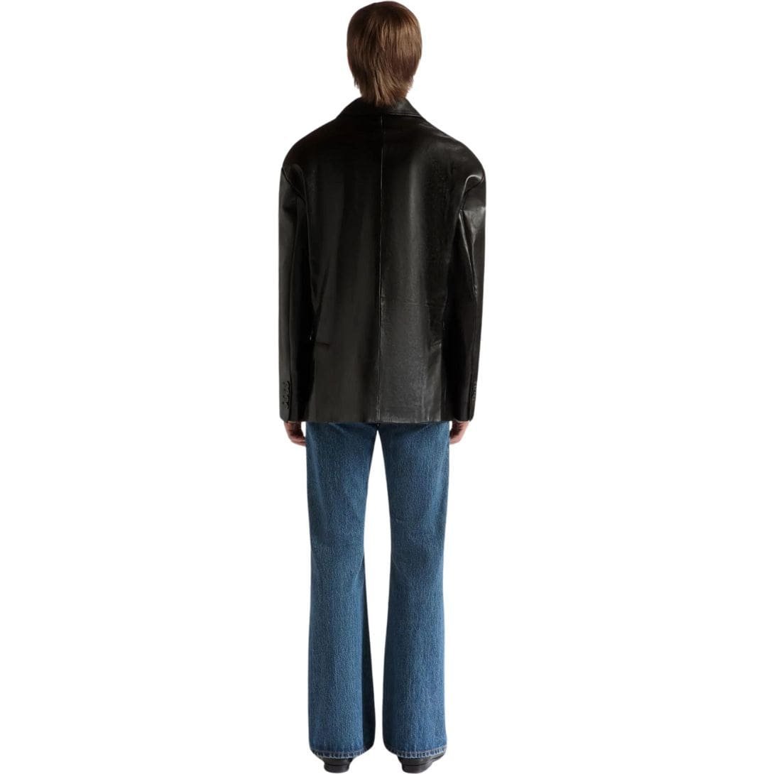 Sleek and versatile, the jacket features a supple yet durable black leather exterior that exudes refinement and refinement. The rich texture of the leather lends an air of exclusivity, while its buttery softness ensures comfort and ease of movement. Meticulously tailored to perfection, the jacket boasts a flattering silhouette that accentuates the wearer’s physique with understated elegance.