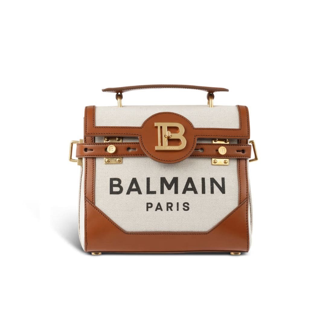Crafted with precision in Italy using a blend of 58% cotton, 42% linen, and luxurious calf leather, this accessory exemplifies Balmain’s dedication to quality and craftsmanship.