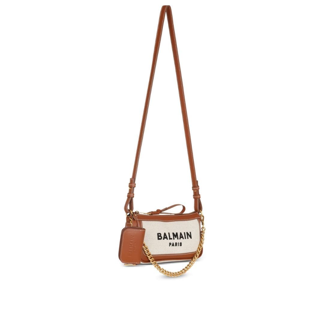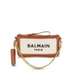 Introducing the Balmain B-Army Canvas clutch bag with leather inserts, a perfect union of utility and sophistication.