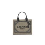 Introducing the Balmain B-Army mini canvas shopping bag with leather inserts, a statement piece designed to elevate your ensemble with bold sophistication.