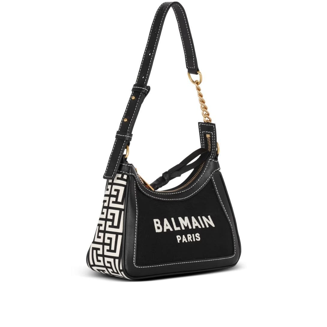 Introducing the exquisite Balmain B-Army monogrammed canvas and smooth leather handbag, meticulously crafted with luxurious leather accents, epitomizing the iconic Balmain Paris style. Emblazoned proudly on the front is the signature Balmain Paris logo, a symbol of timeless elegance and sophistication.
