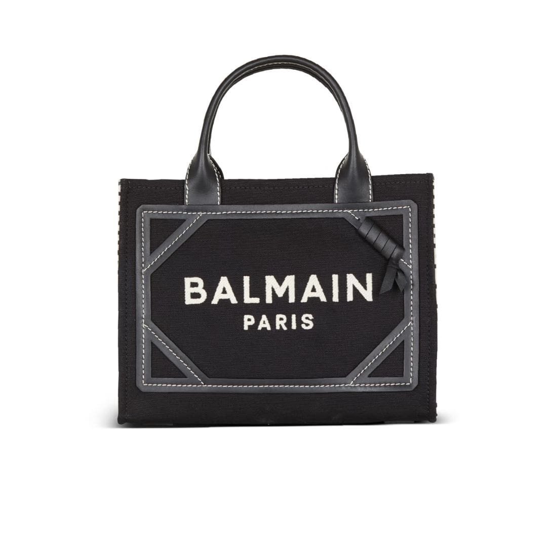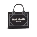 Indulge in the timeless elegance of thebalmain B-Army monogranned canvas and smooth leather tote bag, designed in a chic tote shape and enriched with exquisite leather details. This Italian-crafted masterpiece features leather handles and an adjustable shoulder strap, effortlessly marrying sophistication with practicality. Adorned with leather inserts and the iconic Balmain Paris logo meticulously embroidered, each element exudes refined charm. The Balmain engraved lobster clasp lends a touch of luxury, while interior organization is ensured with a convenient patch pocket and embossed logo. With leather bag feet and golden hardware accentuating its allure, this bag is as durable as it is stylish. Complete with a protective cover, this accessory crafted from 100% cotton and calfskin leather showcases Balmain’s commitment to quality and craftsmanship, offering dimensions of 32.5 x 26 x 8.5 cm for a perfect balance of functionality and sophistication.