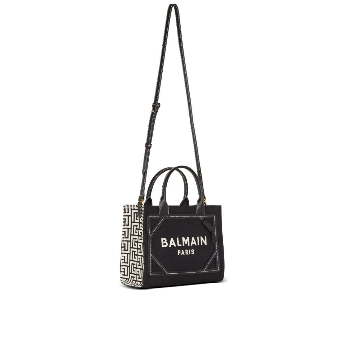 BALMAIN B-ARMY MONOGRAMMED CANVAS AND SMOOTH LEATHER TOTE BAG