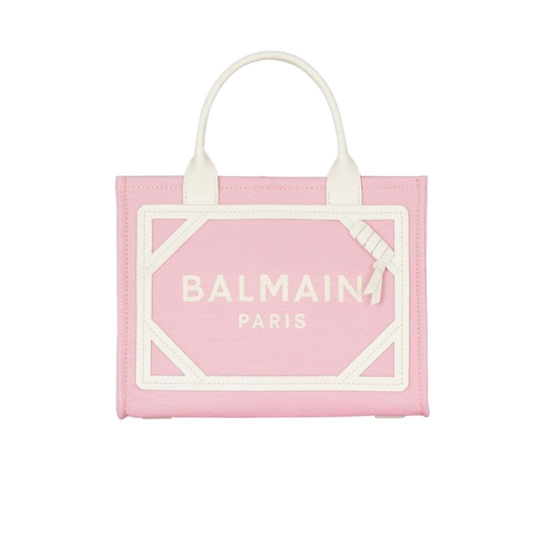 Introducing the Balmain B-Army Small canvas and leather tote bag, a fusion of canvas and leather for an effortlessly stylish look. It offers versatile carrying options: hand-held, on the shoulder, or across the body. Adorned with an embroidered Balmain Paris logo and topstitched leather details, this bag exudes sophistication. It features leather handles and an adjustable shoulder strap for added convenience. The leather fastening with gold metal stud buttons adds a touch of elegance. Inside, find a leather pocket, all lined with durable canvas. The reinforced bottom and leather bag feet ensure longevity. With dimensions of 8.5 x 26 x 32.5 cm and a shoulder strap length of 90 cm, it combines practicality with style. Crafted in Italy from 100% cotton. Item code: CN0FE900TCOY.