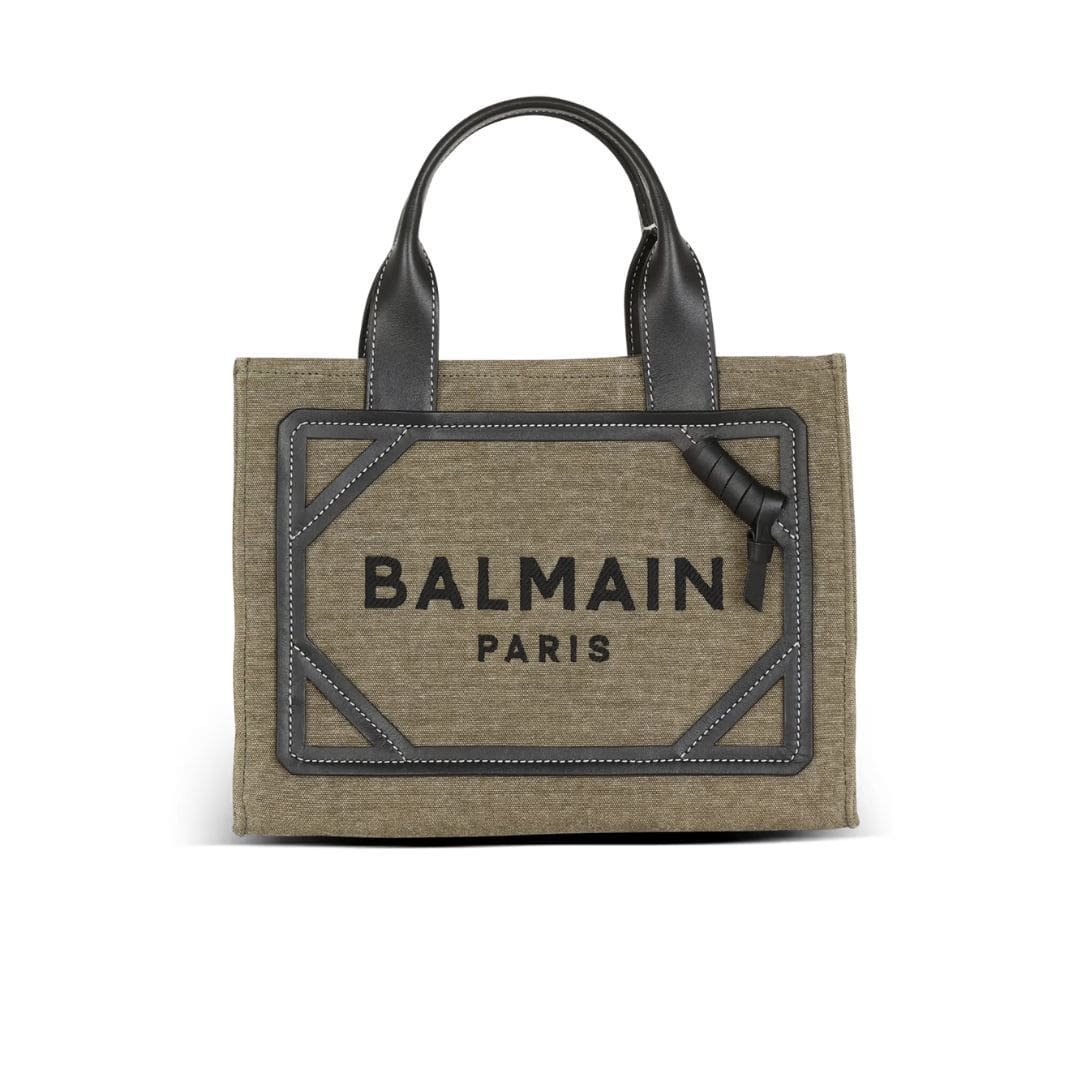 BALMAIN B-ARMY SMALL CANVAS SHOPPING BAG WITH LEATHER INSERTS