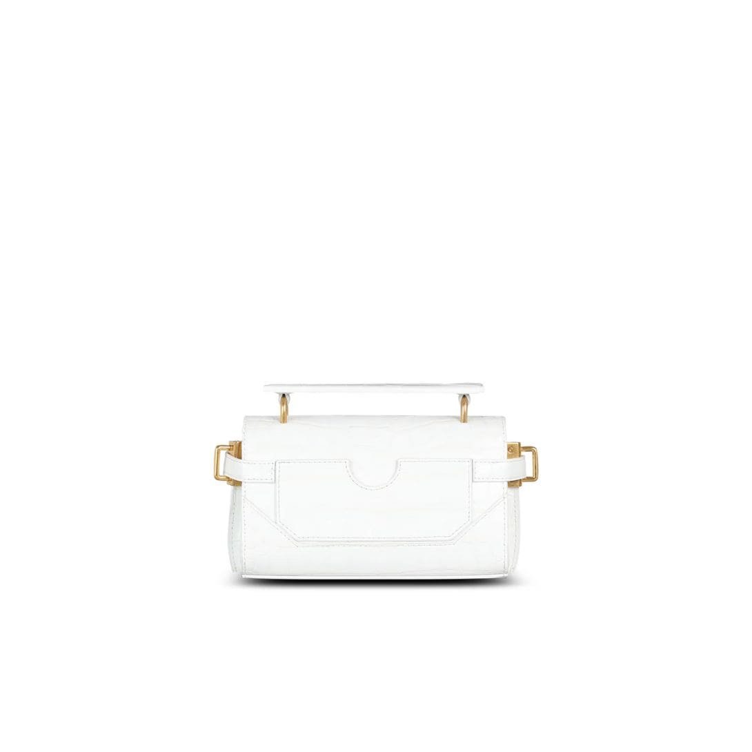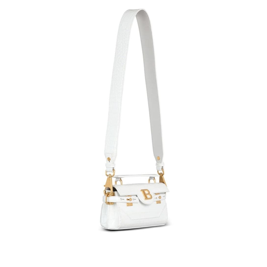 Introducing the Balmain B-Buzz 19 bag in crocodile effect-embossed leather calfskin, a chic accessory that seamlessly blends luxury and versatility.