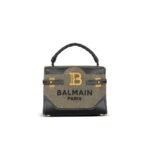Introducing the Balmain B-Buzz 22 top-handle bag in canvas and smooth leather, exuding elegance and functionality. Designed by Balmain, it’s crafted with precision in Italy, ensuring both quality and style.