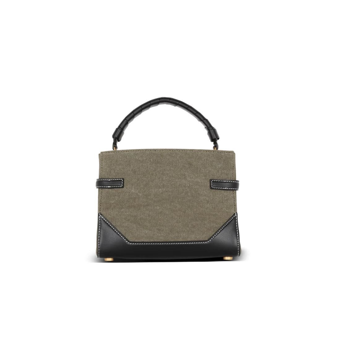 BALMAIN B-BUZZ 22 TOP-HANDLE BAG IN CANVAS AND LEATHER