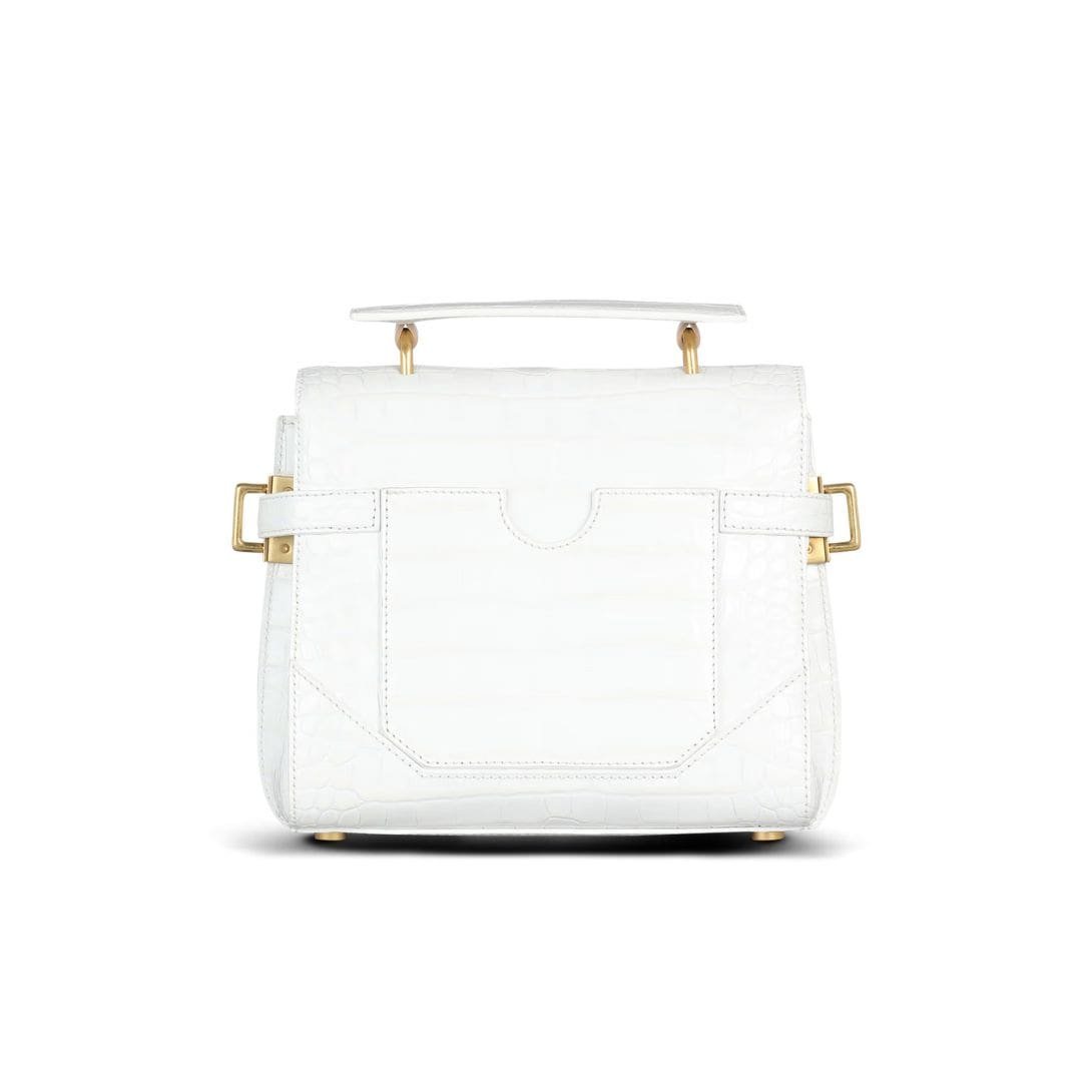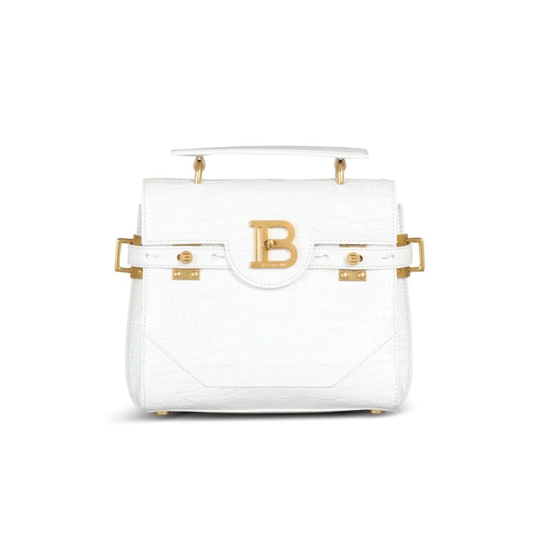Introducing the Balmain B-Buzz 23 bag in crocodile effect-embossed leather calfskin, a statement piece that exudes luxury and sophistication.