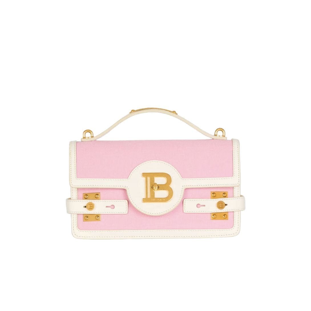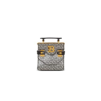 Introducing the Balmain B-Buzz 24 canvas and leather bag, combining canvas and calfskin for a sophisticated look. It offers flexible carrying options: by hand, on the shoulder, or across the body. The bag features a leather handle and a detachable leather strap with engraved snap hooks. Secured with a flap and quarter-turn B-Twist clasp. There’s a convenient patch pocket at the back. Inside, find a zipped pocket and a leather card pocket, all lined with smooth leather. Metal bag feet protect the base. Golden hardware adds a touch of elegance. The bag measures 23 x 20 x 11 cm, with a shoulder strap length of 110 cm. Made in Italy with the main material being 100% cotton. Item code: CN4DB530TCDY.