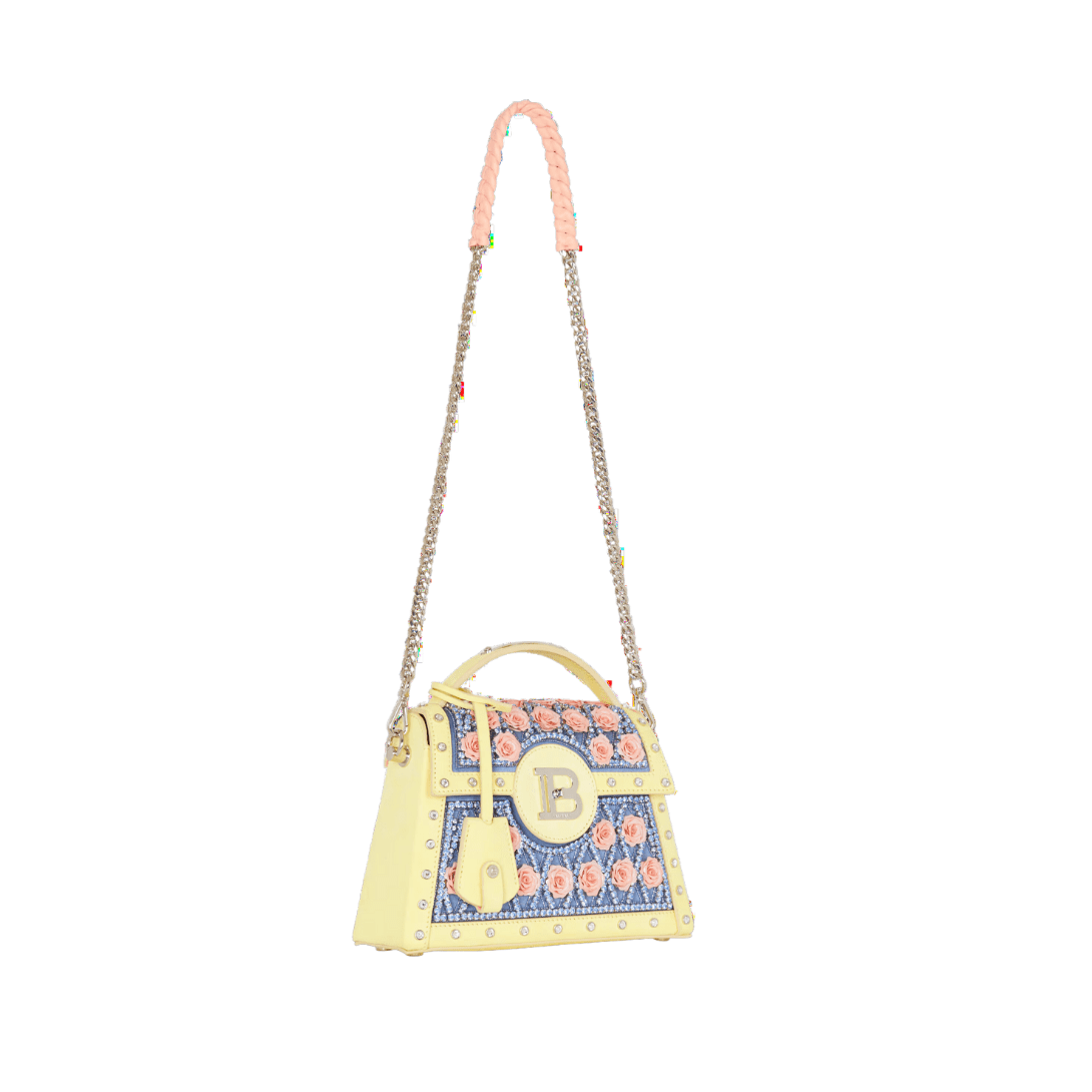 Introducing the balmain b-buzz dynasty bag embroidered with grid and roses, an opulent embodiment of sophistication and luxury. Crafted in Italy with meticulous attention to detail, this exquisite accessory seamlessly blends timeless elegance with contemporary allure.
