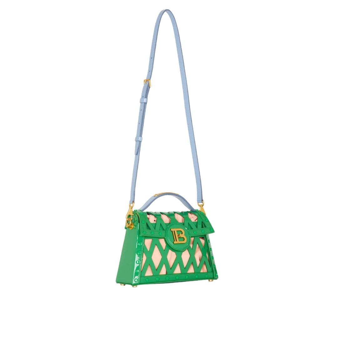 BALMAIN BUZZ DYNASTY BAG IN PATENT LEATHER WITH AN OPENWORK GRID MOTIF