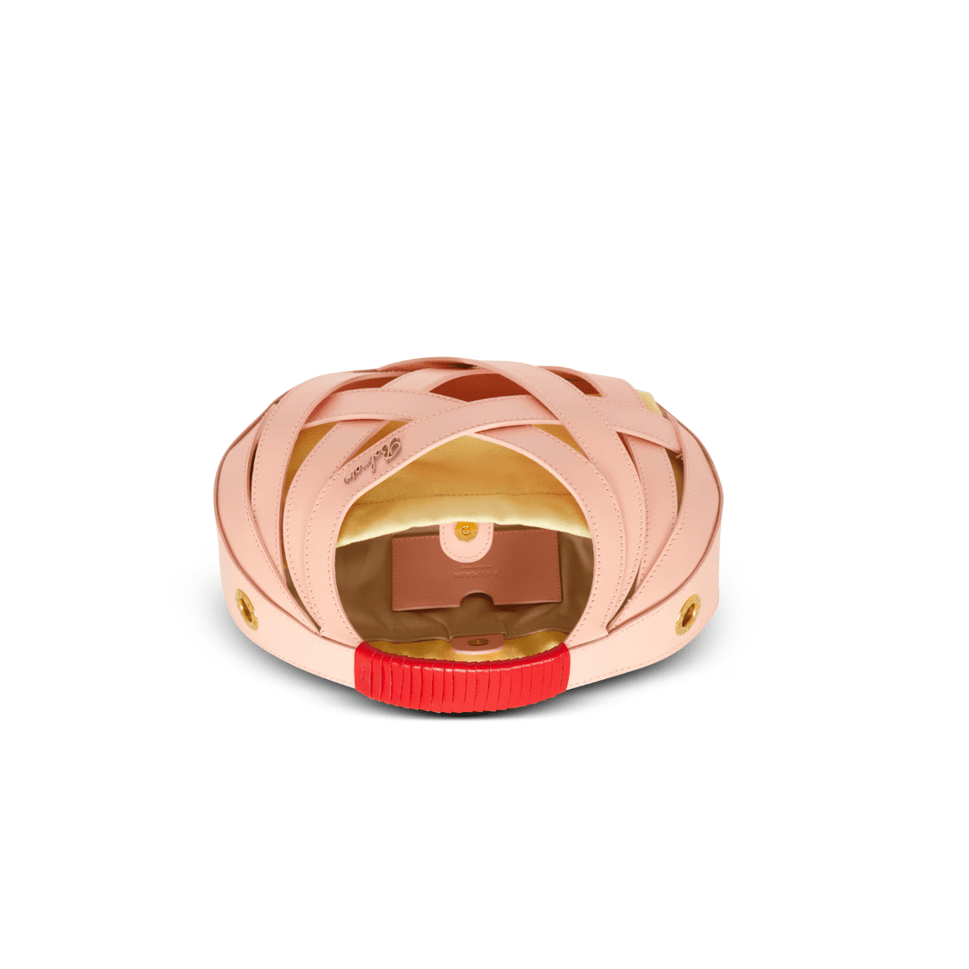 BALMAIN CALFSKIN BASKET BAG WITH AN OPENWORK GRID MOTIF