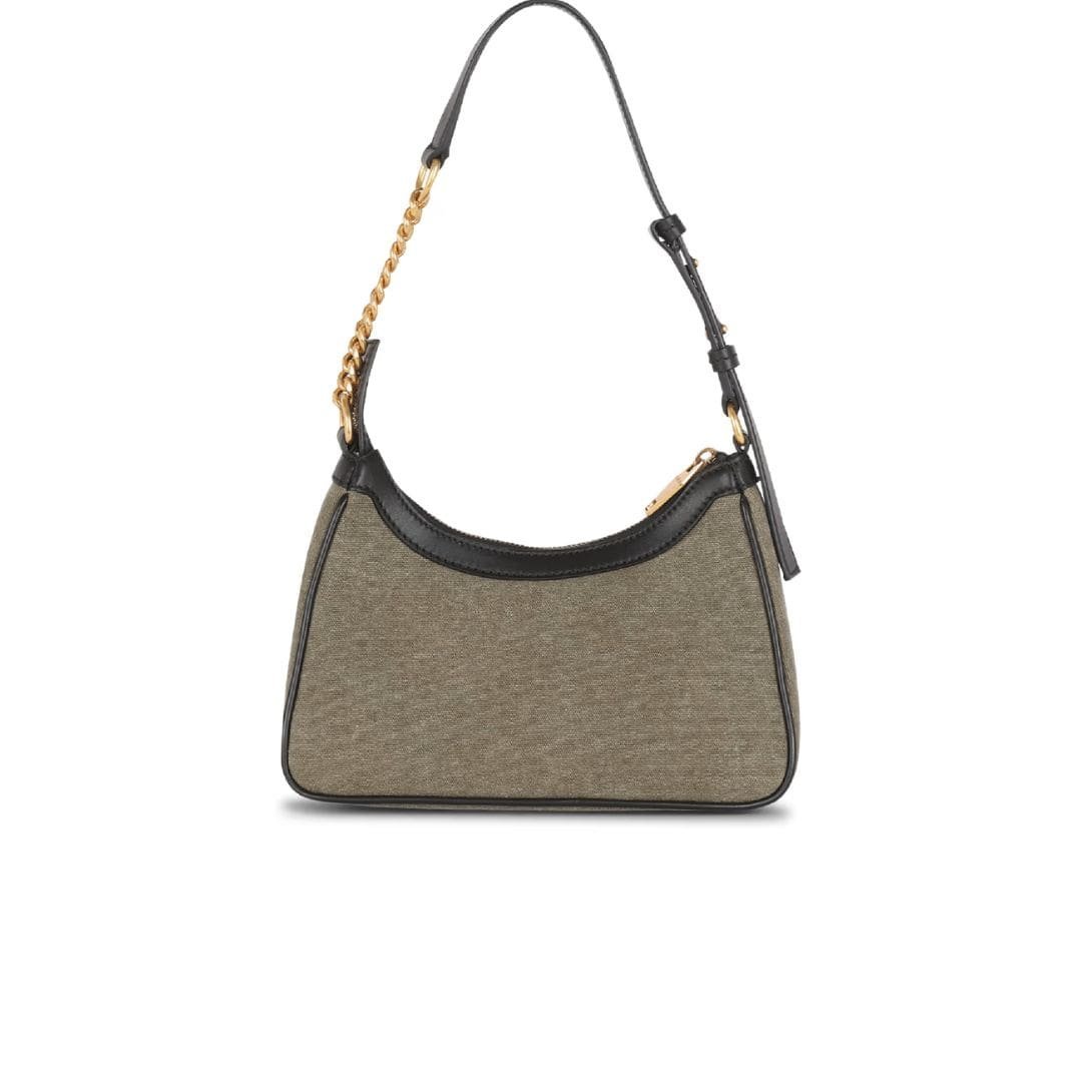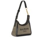 Introducing the Balmain Canvas B-Army handbag with leather panels, a fusion of casual chic and refined elegance, perfect for both everyday wear and special occasions.
