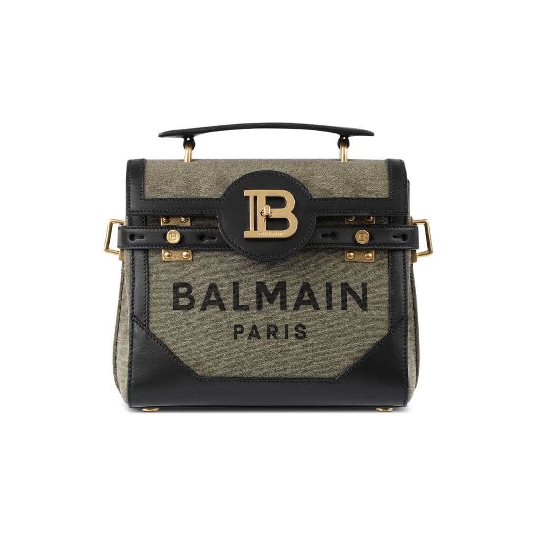 Introducing the Balmain Canvas B-Buzz 23 bag with leather panels, a fusion of utility and sophistication crafted to elevate your style.