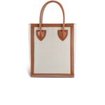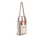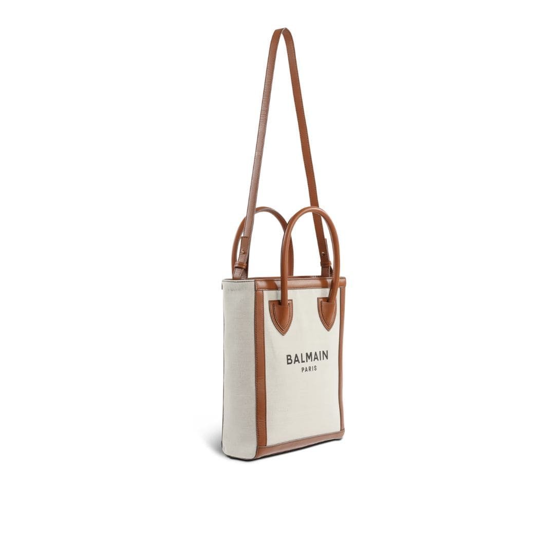 BALMAIN ECRU CANVAS B-ARMY 26 BAG WITH BROWN LEATHER PANELS