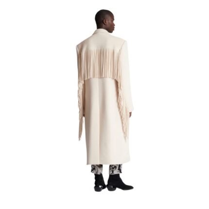 BALMAIN UNISEX LONG FRINGED WOOL AND CASSHMERE COAT
