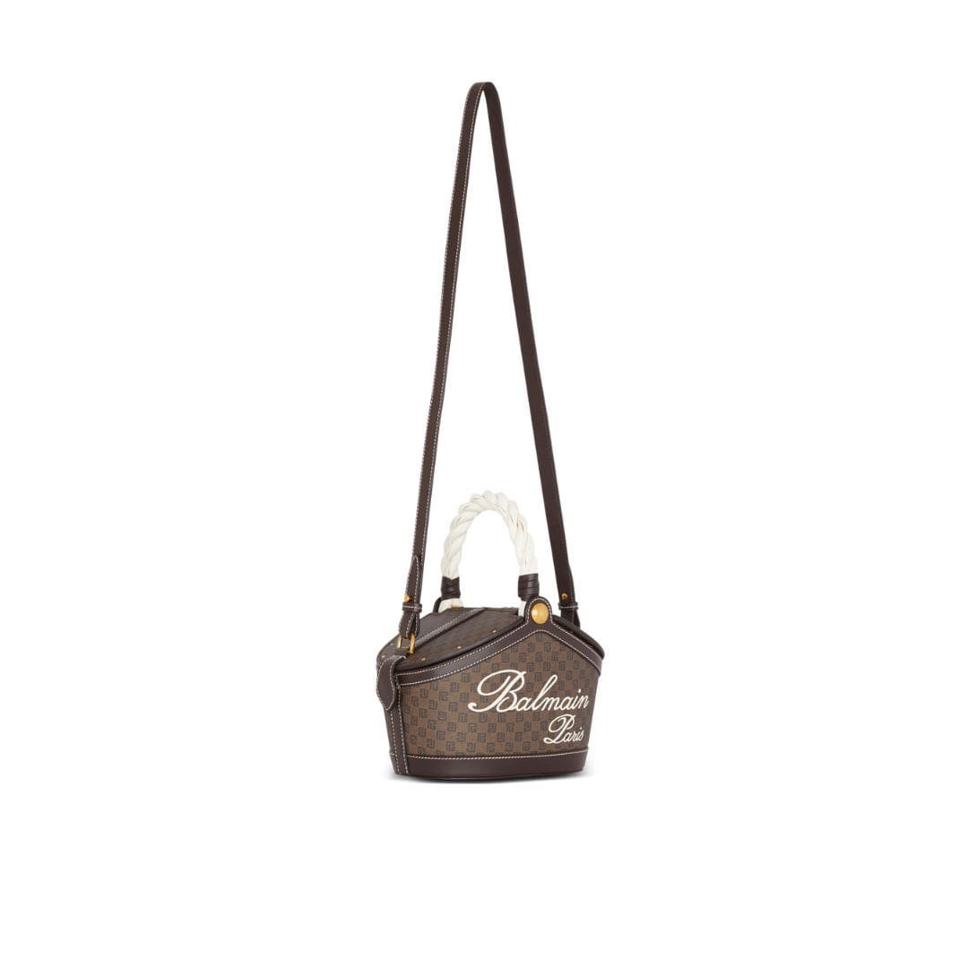 BALMAIN MONOGRAM CANVAS AND LEATHER BUCKET BAG