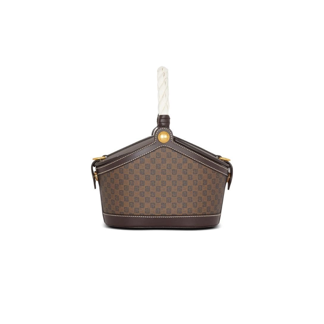 Introducing the exquisite balmain Monogram Canvas and leather Bucket Bag with Smooth Leather Detailing, a harmonious fusion of style and practicality.